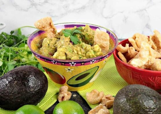 Avocado “Graveyard” Guacamole with Pork Rind Tombstones
