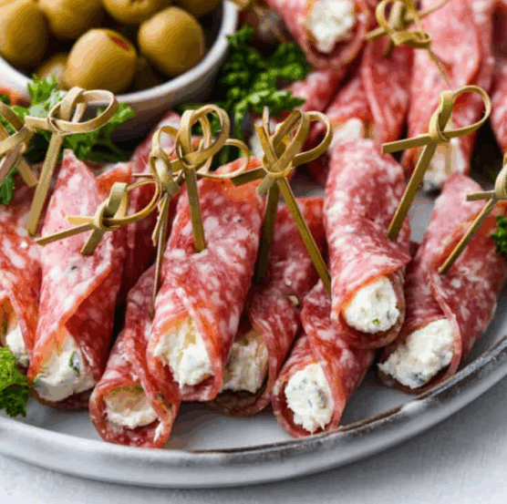 Salami and Cream Cheese Roll-Ups as “Mummy wraps”