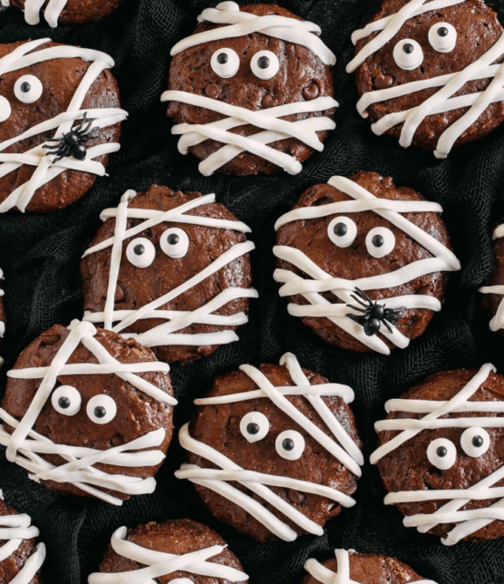 These adorable wrapped cookies are almost too cute to eat, but their incredible chocolate flavor makes them irresistible. The soft, chewy texture contrasts perfectly with the crispy white chocolate “bandages” that create the mummy effect.
