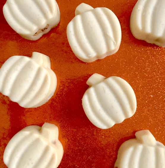 The classic chocolate-peanut butter combo gets a festive Halloween makeover in these adorable pumpkin-shaped treats. They taste like upscale peanut butter cups with a creamy, rich filling that melts perfectly on your tongue.