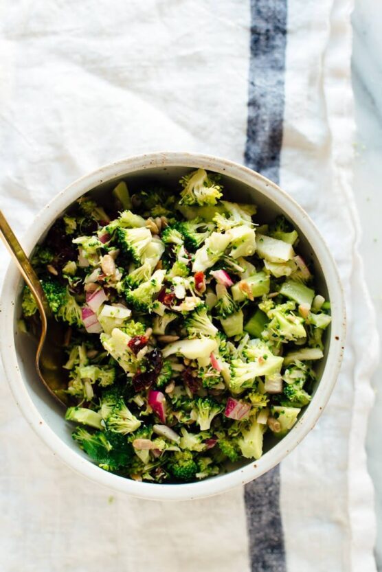 The nutty flavor complements the broccoli’s natural earthiness beautifully, and the extra crunch makes it feel more substantial. It’s particularly great for outdoor gatherings and stays fresh longer than versions with more delicate additions. Check the recipe here.