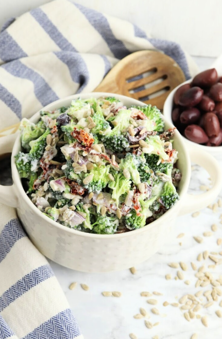 The olives provide healthy fats and a briny punch that perfectly balances the mild broccoli. It’s refreshing yet satisfying, and the colorful ingredients make it visually stunning on any table. This salad actually improves with time, making it perfect for entertaining or meal prep. Check the recipe here.