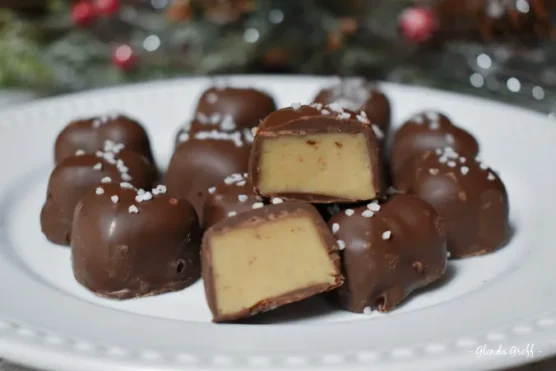 Cool, refreshing mint filling gets wrapped in dark chocolate for a perfectly balanced candy. The mint layer is smooth and creamy with just the right amount of peppermint flavor to feel festive without tasting like toothpaste. They’re surprisingly easy to shape and dip, even if you’ve never made candy before.