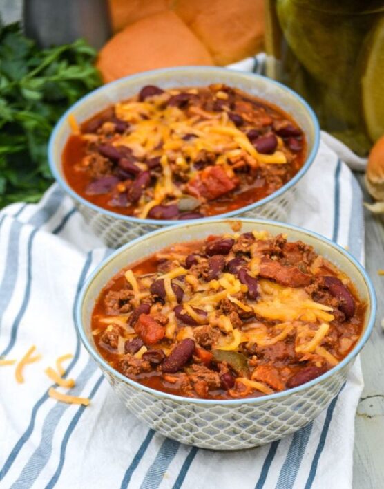 Set it and forget it convenience meets incredible flavor in this hearty two-meat chili. The combination of ground beef and Italian sausage creates amazing depth while the slow cooker does all the work. Just brown the meats, toss everything in the crockpot, and come home to incredible smells and dinner ready to serve.
