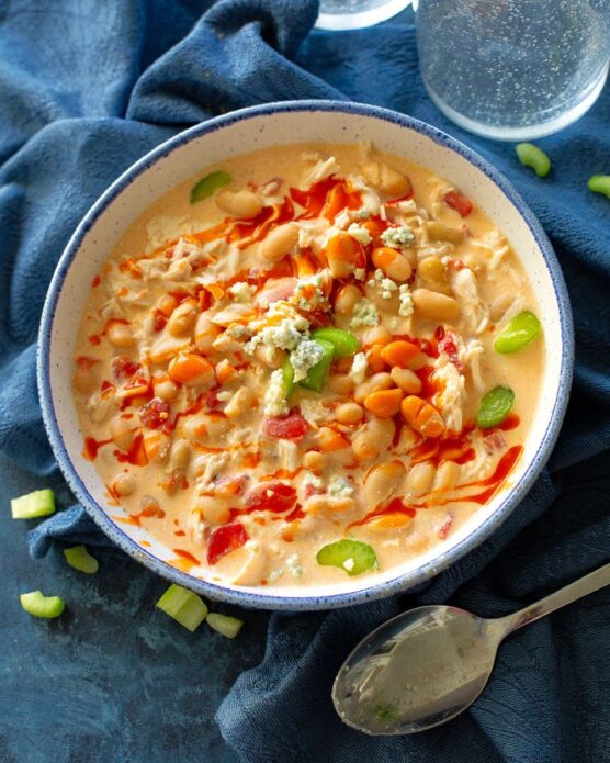 Top it with blue cheese crumbles and chopped celery for the full buffalo experience. It’s fun, festive, and guaranteed to be a hit with anyone who loves buffalo chicken anything. Check the recipe here.