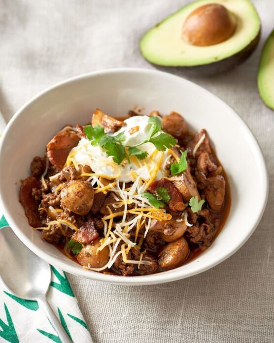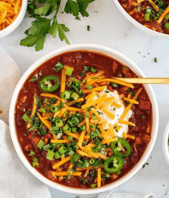 This chili feels fresh and modern while still being deeply satisfying. It’s lighter than beef-based versions but packed with flavor, making it perfect for those who want something substantial but not too heavy. Check the recipe here.