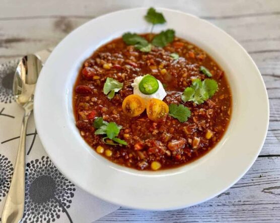 From classic beef versions to creative twists like buffalo chicken and chorizo cauliflower, these recipes prove you don’t need to sacrifice taste for your lifestyle. Most can be made in one pot, freeze beautifully, and taste even better the next day – making them perfect for busy weeknights or feeding a crowd.
