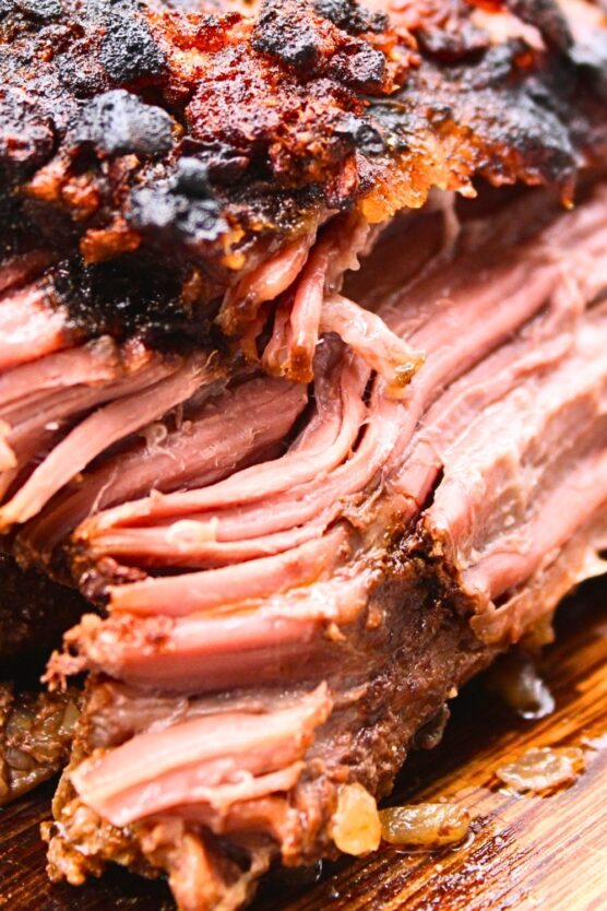 This brisket develops a deep, smoky flavor and becomes so tender you can cut it with a fork. The slow cooking method ensures every slice is moist and delicious. It’s perfect for feeding a large group since brisket is substantial and satisfying.