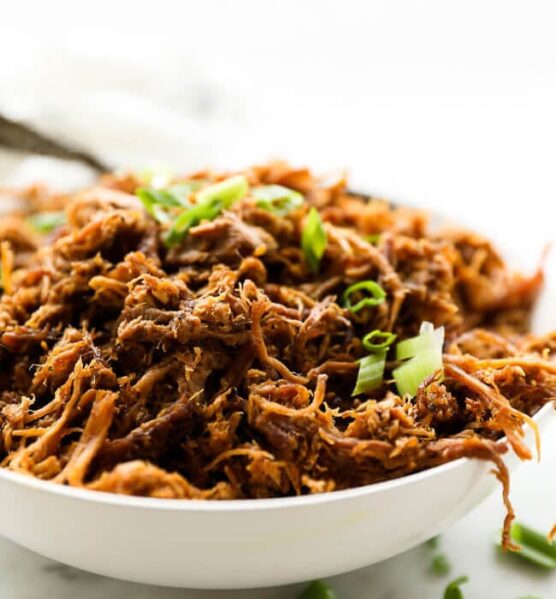 This fork-tender pork is seasoned with a sugar-free spice rub that creates an incredible crust of flavor. The meat becomes so tender it shreds effortlessly, making it perfect for serving a crowd. You can use it as a main dish or set up a fun build-your-own plate station with low-carb sides.