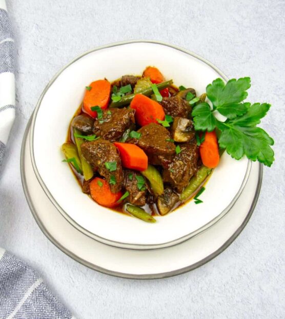Get that all-day simmered flavor in just about an hour with this hearty beef stew. The chunks of beef become melt-in-your-mouth tender, and the broth is deeply flavored with herbs and vegetables. Using radishes instead of potatoes keeps it keto-friendly without sacrificing that classic stew texture.