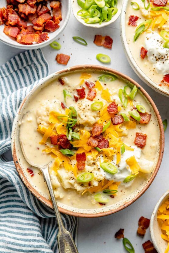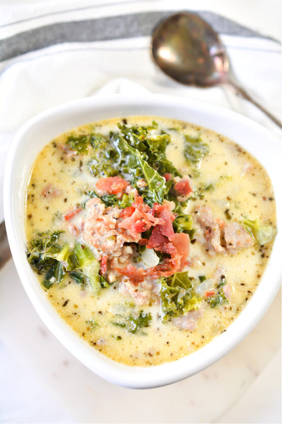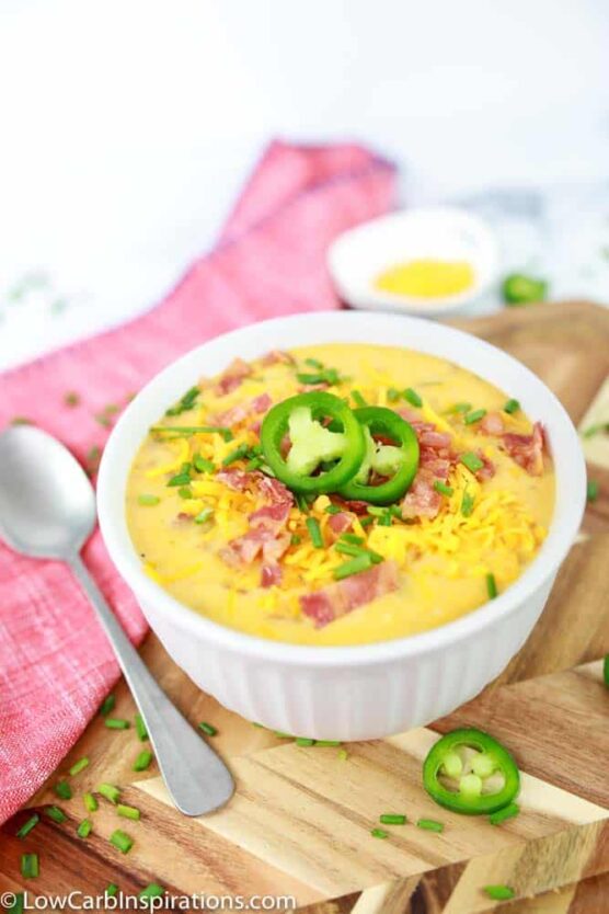 It’s hearty enough to serve as a main dish and comes together quickly for an easy weeknight meal. Topped with extra bacon crumbles and shredded cheese, this soup is a warm, keto-friendly indulgence you’ll want to make all season long.