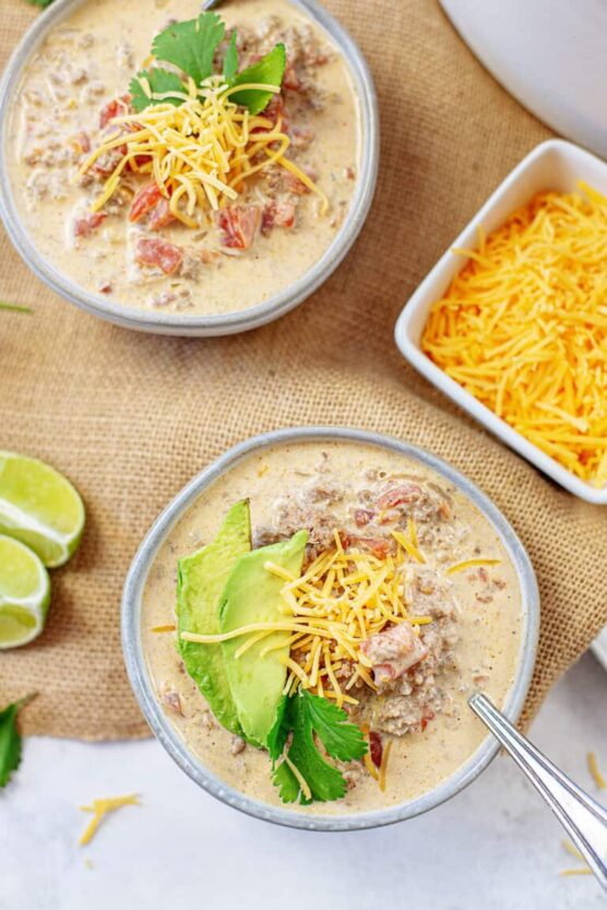 Think of all the flavors of chicken enchiladas in a comforting bowl. This soup delivers smoky, spicy notes with tender chicken and melted cheese in every spoonful. It’s surprisingly quick to prepare using rotisserie chicken as a shortcut. Top it with sour cream, avocado, and cilantro for a complete meal that feels indulgent while keeping carbs minimal.