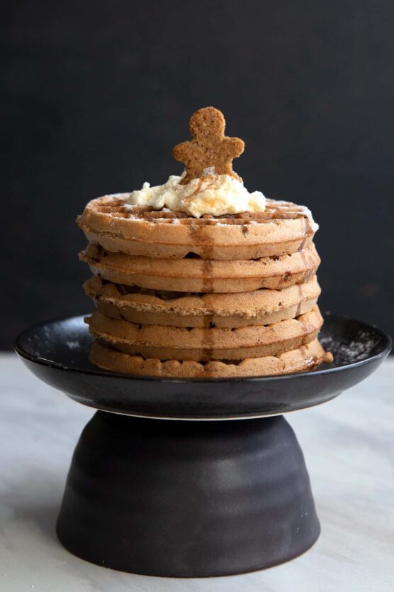 Crispy on the outside and fluffy inside, these waffles are weekend breakfast goals. They develop beautiful golden pockets that hold butter and sugar-free syrup perfectly. The gingerbread spices make them feel special occasion-worthy even on regular mornings.