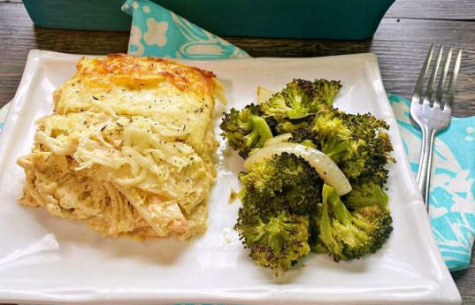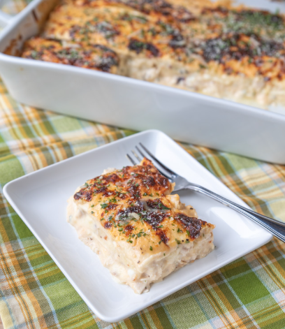 Creamy Alfredo sauce replaces marinara in this white lasagna variation that’s pure indulgence. Tender chicken pieces add protein and make this a complete meal in one dish. The rich, garlicky sauce coats every layer of whatever noodle replacement you choose—zucchini or eggplant both work great.