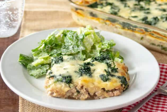 Slices of deli meat like ham or turkey replace noodles in this genius, zero-prep solution. The meat adds protein and flavor while creating distinct layers that hold together perfectly. This is the fastest keto lasagna you can make since there’s no slicing vegetables or pre-cooking anything.