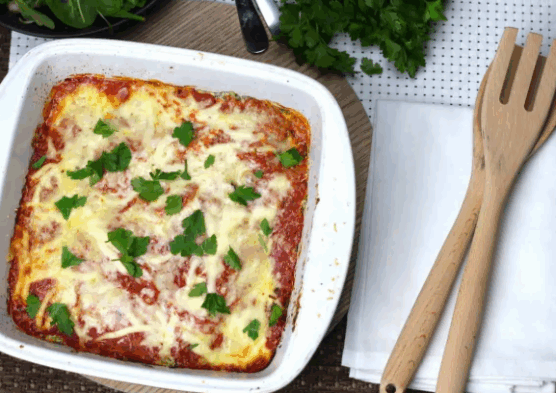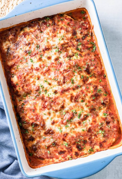 Palmini noodles made from hearts of palm are the closest thing to real pasta in texture and appearance. They’re neutral in flavor, so they let the sauce and cheese shine without adding any veggie taste. These noodles require minimal prep—just rinse and layer—making assembly super quick.