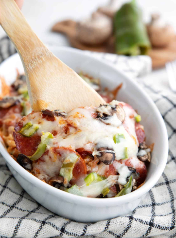 This deconstructed take on lasagna brings pizza flavors to the party. Pepperoni, Italian sausage, mozzarella, and pizza sauce layer together with your choice of low-carb base. It tastes like deep-dish pizza and lasagna had a delicious baby. You can customize toppings endlessly—add bell peppers, olives, or whatever you’d put on pizza.