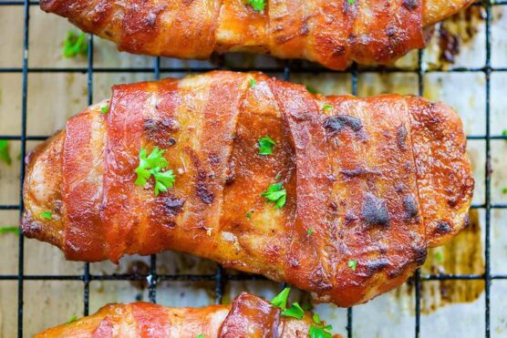These showstopper chops combine three incredible elements: tender pork, savory stuffing, and crispy bacon. The stuffing stays moist and flavorful inside while the bacon wrapper keeps everything juicy and adds a smoky crunch.