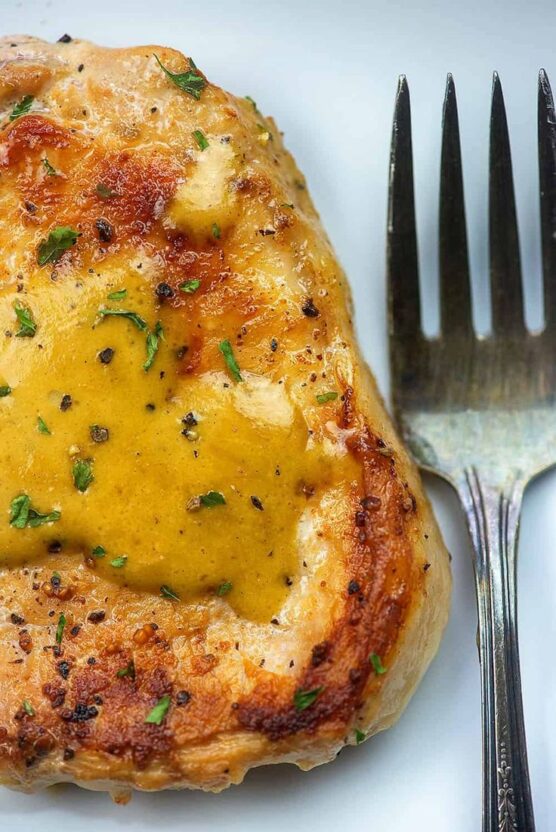 Sophisticated and flavorful, these glazed pork chops have a beautiful golden color and complex taste profile. The Dijon mustard adds tanginess and depth while creating a gorgeous glaze that caramelizes during cooking.