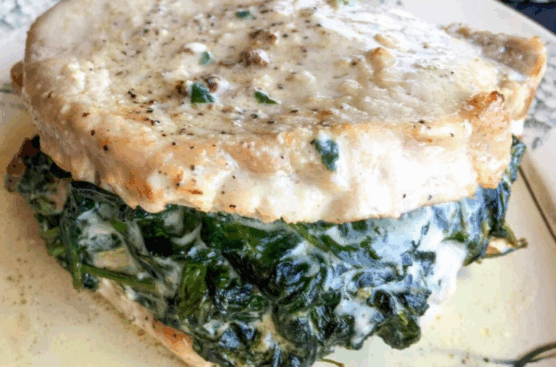 Creamed Spinach Stuffed Pork Chops
