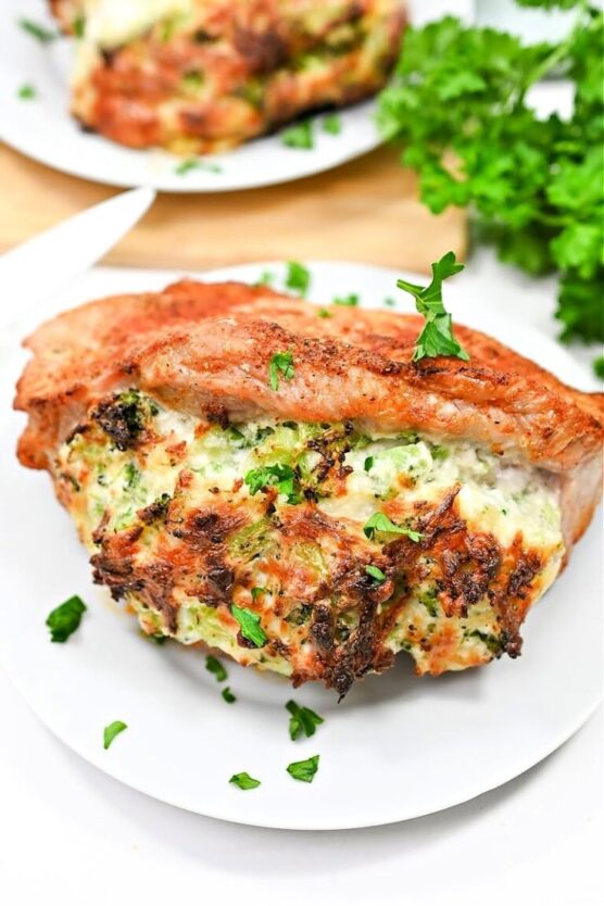 These stuffed chops are like having your protein and vegetables all in one delicious package. The cheesy broccoli filling stays creamy and flavorful while adding extra nutrition and substance to the meal.