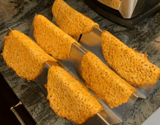 Crispy, golden cheese shells deliver incredible crunch and rich flavor that actually improves on traditional taco shells. The cheese gets beautifully crispy when baked or fried, creating a sturdy vessel that holds fillings perfectly. They’re ridiculously easy to make—just melt cheese and shape it while warm.