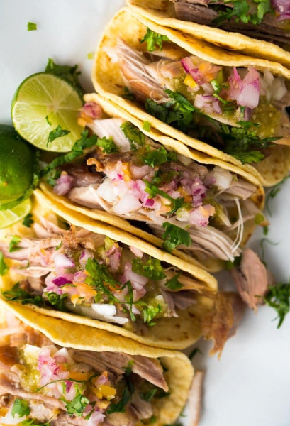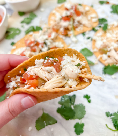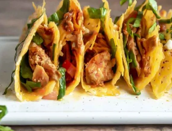 The chicken can be made in a slow cooker for ultimate convenience. These tacos are perfect for game day or anytime you want bold flavors.