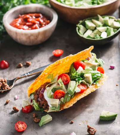 All your favorite taco fixings served over cauliflower rice or lettuce eliminates the need for shells entirely. This is the most customizable option since everyone can build their own bowl exactly how they like it. It’s perfect for meal prep—just portion everything into containers for grab-and-go lunches.