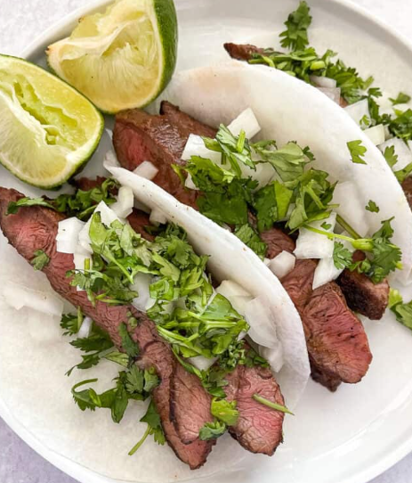 Grilled steak strips seasoned with lime and spices bring upscale flavor to taco night. The meat is naturally keto-perfect and incredibly satisfying with its rich, beefy taste. Quick-cooking cuts like skirt or flank steak work best and stay tender when sliced against the grain.