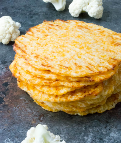 Riced cauliflower combined with cheese and eggs creates flexible tortillas with mild flavor. They’re softer than cheese shells but sturdier than lettuce wraps, occupying a nice middle ground. These tortillas add extra vegetables to your meal, which is always a bonus. The cauliflower taste is subtle and works well with bold Mexican flavors.