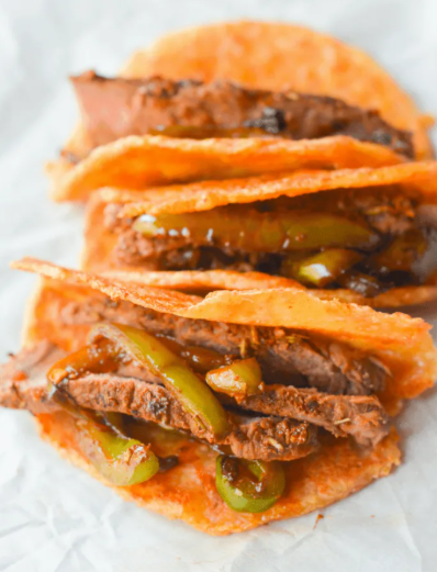 Keto steak tacos on pork rind tortillas bring a rich, savory flavor perfect for a low carb meal. The tortillas are made from crushed pork rinds mixed with simple ingredients to create a warm, flexible base that feels surprisingly satisfying.