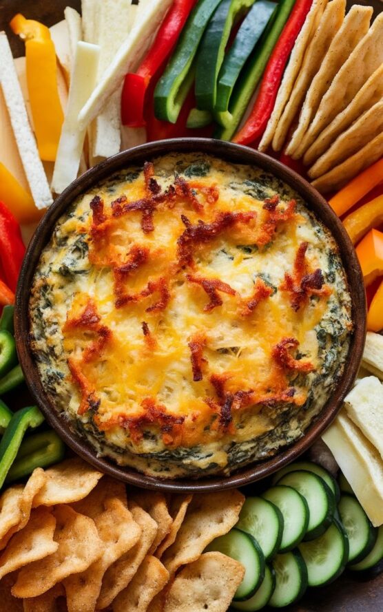 It’s perfect for making ahead and reheating when guests arrive. The combination of spinach and artichokes provides great texture while three different cheeses create that irresistible stretchy, gooey consistency everyone loves. Check the recipe here.