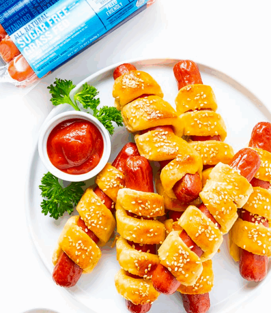 Kids and adults alike love them, making them perfect family-friendly appetizers. The dough can be made ahead and stored in the fridge, then wrapped and baked when ready. Serve with sugar-free ketchup and mustard for dipping. Check the recipe here.