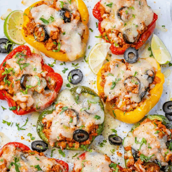 These stuffed peppers are like little edible bowls of comfort food. The sweet bell peppers become tender and slightly caramelized while the turkey filling stays moist and flavorful inside.