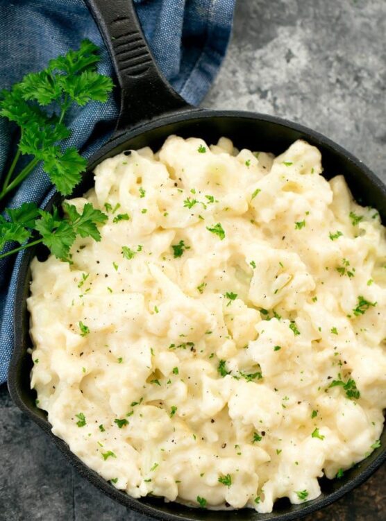 A hint of butter and seasoning makes it taste remarkably authentic. It’s surprisingly quick to make and comes together in one pan. The texture is spot-on creamy with little pops of “corn,” and the flavor is nostalgically perfect. Even corn lovers will be fooled by this clever swap. Check the recipe here.