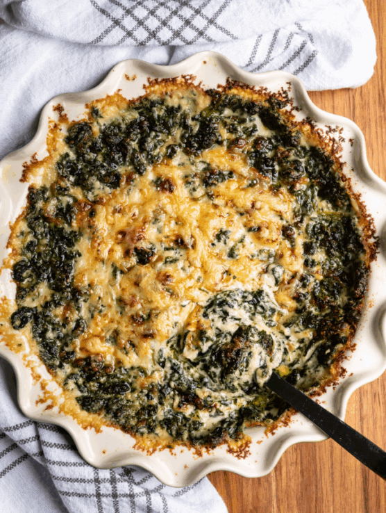Rich, velvety, and absolutely luxurious, this creamed spinach puts steakhouse versions to shame. Fresh spinach gets wilted and folded into a decadent cream sauce, then topped with melted cheese for a bubbly, golden finish.