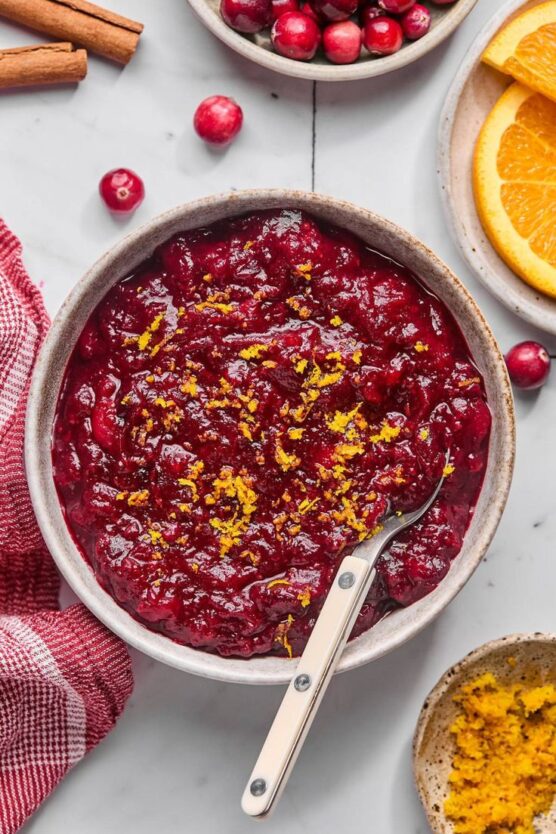 Tart, sweet, and jewel-toned, this cranberry sauce tastes just like grandma’s recipe but without the sugar crash. Fresh cranberries burst and thicken naturally, while erythritol or monk fruit provides the perfect sweetness balance.