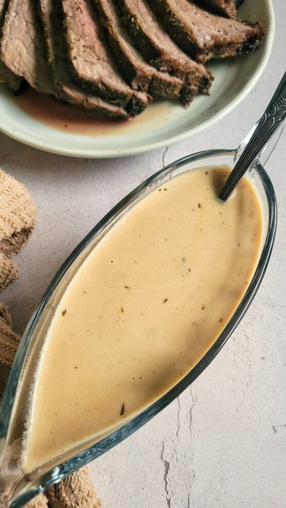 Silky, rich gravy that coats your spoon perfectly, made without a grain of wheat flour. Almond flour creates the ideal thickening base, while pan drippings and stock provide deep, savory flavor. It whisks together smoothly without any lumps and has that classic gravy consistency everyone expects.