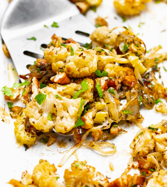 Tender cauliflower florets replace bread cubes in this genius stuffing alternative that captures all the herby, savory goodness you crave. Celery, onions, and sage create that familiar stuffing flavor profile, while the cauliflower absorbs all the delicious seasonings beautifully.