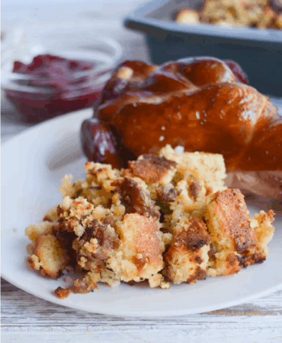 It’s relatively easy to make and can be prepped ahead of time. Each bite is loaded with sage, thyme, and savory goodness. The texture is pleasantly varied, and the flavors are deeply comforting and traditional. Check the recipe here.