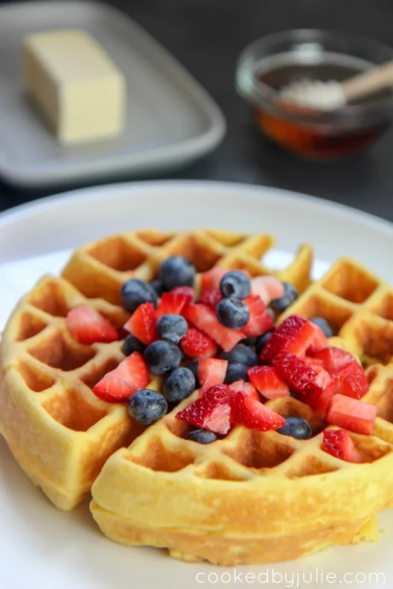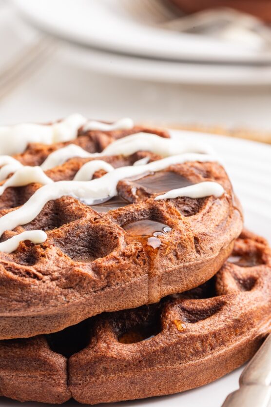 Cinnamon and sweetener combine to recreate that beloved churro flavor in waffle form. They’re crispy on the outside with a tender, slightly chewy interior reminiscent of actual churros. The cinnamon-sweetener coating adds incredible flavor and extra crunch to every bite.